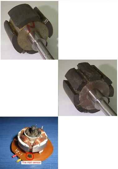 • Stator:The stator of a BLDC motor consists of stacked steel laminations with windings placed in the slots that are axially cut along the inner periphery. Traditionally, the stator resembles that of an induction motor; however, the windings are distributed in a different manner.